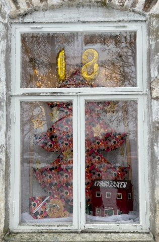 Även i år deltog Kvinnojouren i att skapa ett adventsfönster i Rydal. Titel på fönstret var Kvinnofrid.